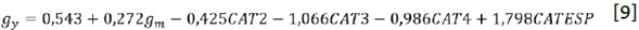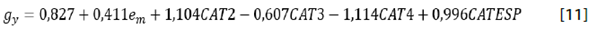 ≈ 0,71), en parte consecuencia de la inclusión del vector de control. Por consiguiente, al considerar los coeficientes estimados para la variable categórica CAT se debe partir de la categoría de referencia denominada primera, por lo que la categoría especial se encuentra por arriba y las categorías segunda, tercera y cuarta se encuentran por debajo en concordancia a los indicadores de población e ingresos.