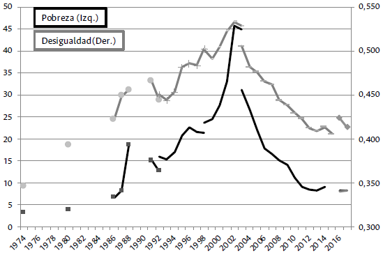Figura 4: Desigualdad y pobreza en Argentina, 1974-201734