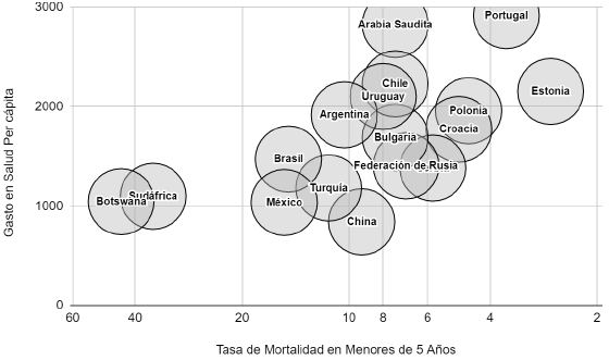 Existe una correlación entre el ingreso per cápita del país y su gasto en salud per cápita y -por lo tanto- también con los resultados obtenidos en indicadores de salud. Como vemos en la figura 2, países de altos ingresos per cápita como Estados Unidos, Portugal, Estonia o Arabia Saudita, también invierten más recursos en salud en términos per cápita.