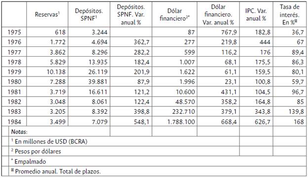 Tabla 1: Evolución de las principales variables macroeconómicas. Argentina, 1975-1984