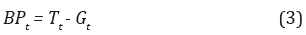 De igual forma, se puede representar el balance primario del gobierno (BP) tomando solo la diferencia entre sus ingresos y gastos sin intereses: