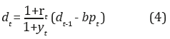 Ahora, si se asume que la economía crece a una tasa anual y t , entonces la ecuación 2 puede transformarse en: