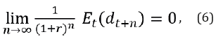 De manera equivalente, en algún momento los déficits primarios deben compensarse completamente con superávits. Si esta condición se cumple, se tiene: