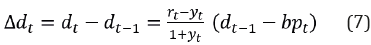 Ahora, de la ecuación 4 se llega a que los cambios en la deuda (Δd t ) vienen dados por: