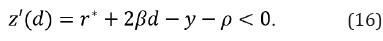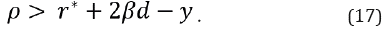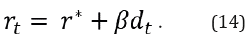 Mackiewicz-Łyziak y Łyziak (2019) extienden este desarrollo al considerar que el supuesto de una tasa de interés libre de riesgo no es razonable en economías emergentes, ya que estas se enfrentan a mayores costos de endeudamiento junto con primas de riesgo -país- elevadas. Por tanto, la diferencia r* -y no es constante y la condición descrita en la ecuación 13 ya no es una condición suficiente para la sostenibilidad fiscal en estos países5. Para superar esta limitación consideran una tasa de interés endógena que se incorpora a partir de una relación lineal, en la que la tasa de interés que paga un país por su deuda se encuentra determinada por r* y el riesgo de incumplimiento, el cual depende del nivel de deuda, como indica la ecuación 14.