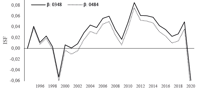 Valores positivos del ISF confirman una política fiscal sostenible, es decir, muestran que la respuesta del gobierno frente a un aumento de la deuda pública es lo suficientemente fuerte como para absorber los efectos de una mayor prima de riesgo, mientras que un valor negativo revela que la sostenibilidad fiscal está en riesgo.