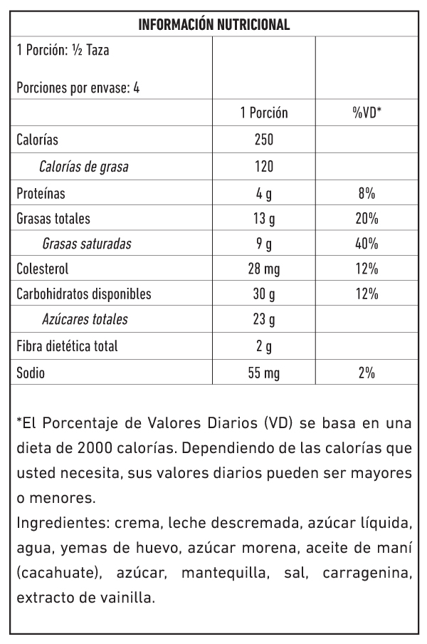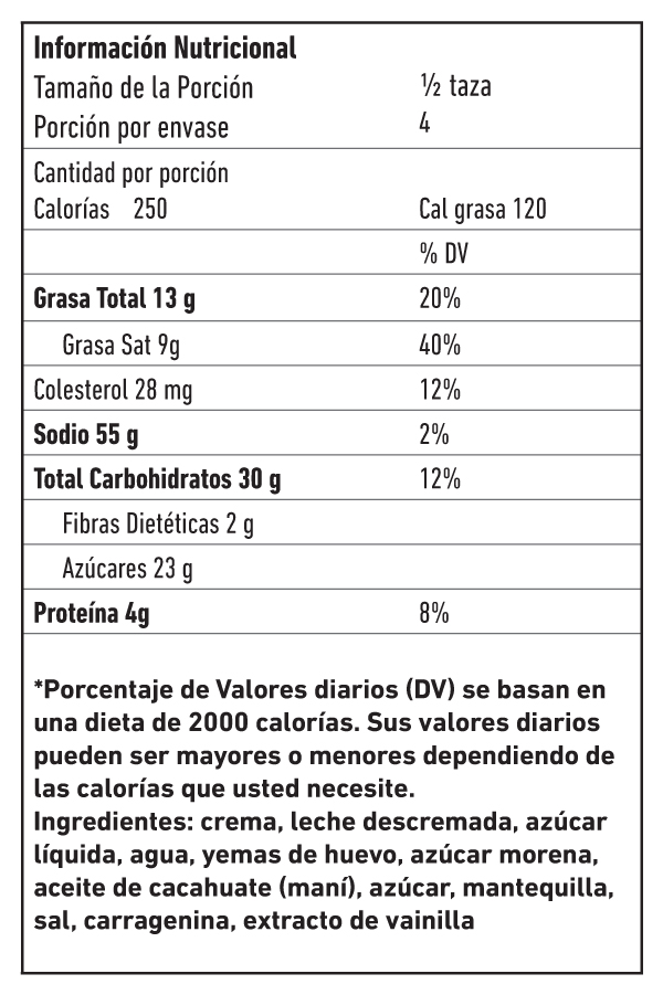 LEA AL PACIENTE: Esta información aparece en el reverso de un envase de helado.