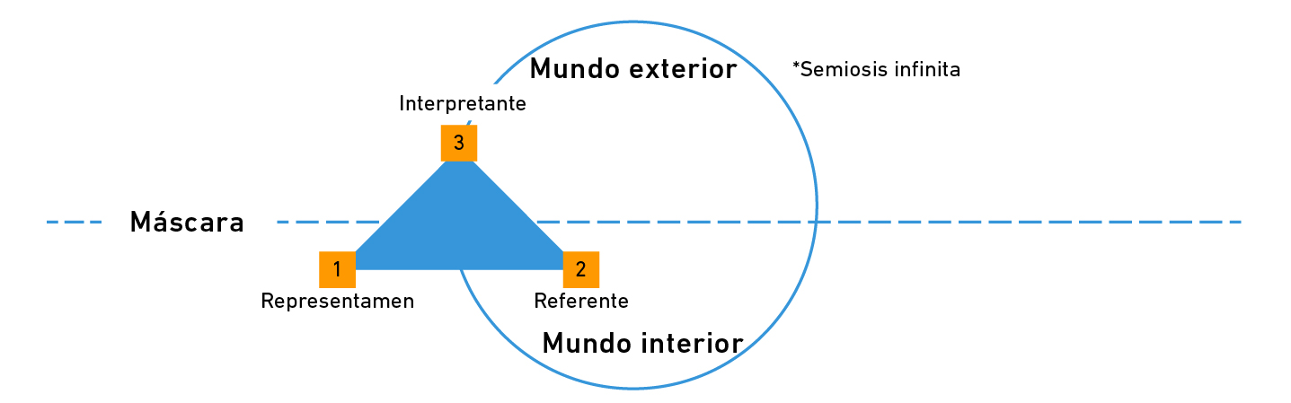 Si en el primero pensamos las ondulaciones de la subjetividad y en el segundo la construcción del nosotros, pronto captaremos la función sígnica de la máscara. Como dispositivo, la máscara enarbola un representamen que se erige ante los otros como mediador entre mundo interior y mundo exterior.