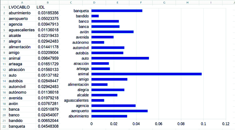Figura 2.: Índice de disponibilidad léxica, con gráfica, arrojado por IDL