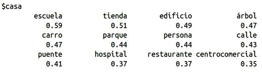 Figura 5.: Grado de asociación de vocablos con el vocablo clave (casa) mediante R
