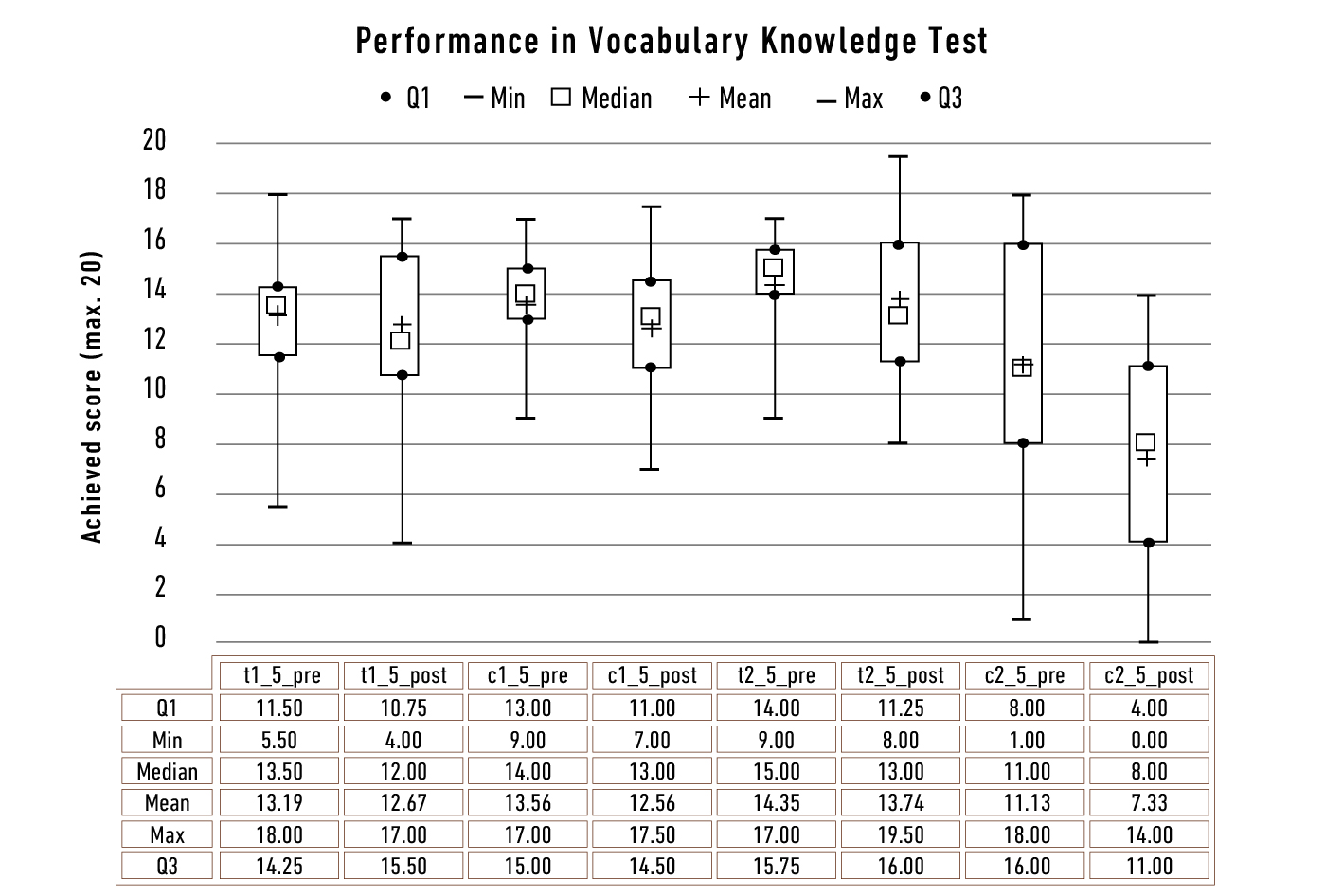 Though the intervention did not improve the performance of the test group quantitatively, the teacher’s feedback was very positive. After working with the intervention material, she understood the necessity to spend time on vocabulary learning in class, but also suggested to integrate the tasks into the prepared text and shorten them as well, to avoid boring students with long-lasting exercises.