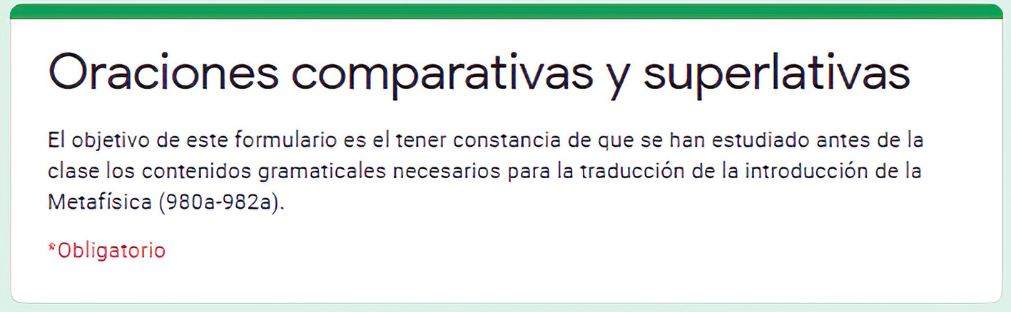 Así pues, la unidad didáctica, como se verá a continuación, integró no solo métodos, enfoques y metodologías de enseñanza y aprendizaje de lenguas extranjeras, sino también TAC para la lectura, interpretación y traducción de la introducción de la Metafísica de Aristóteles (980a-982a).