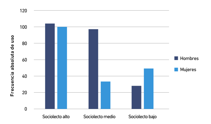 Para los criterios sociales (sexo, edad y nivel de instrucción), se ha puesto de manifiesto que es el nivel alto quien usa predominantemente esta construcción. Además, se trata de informantes de la primera generación, hombres y mujeres, con escasa diferencia entre ambos sexos15.