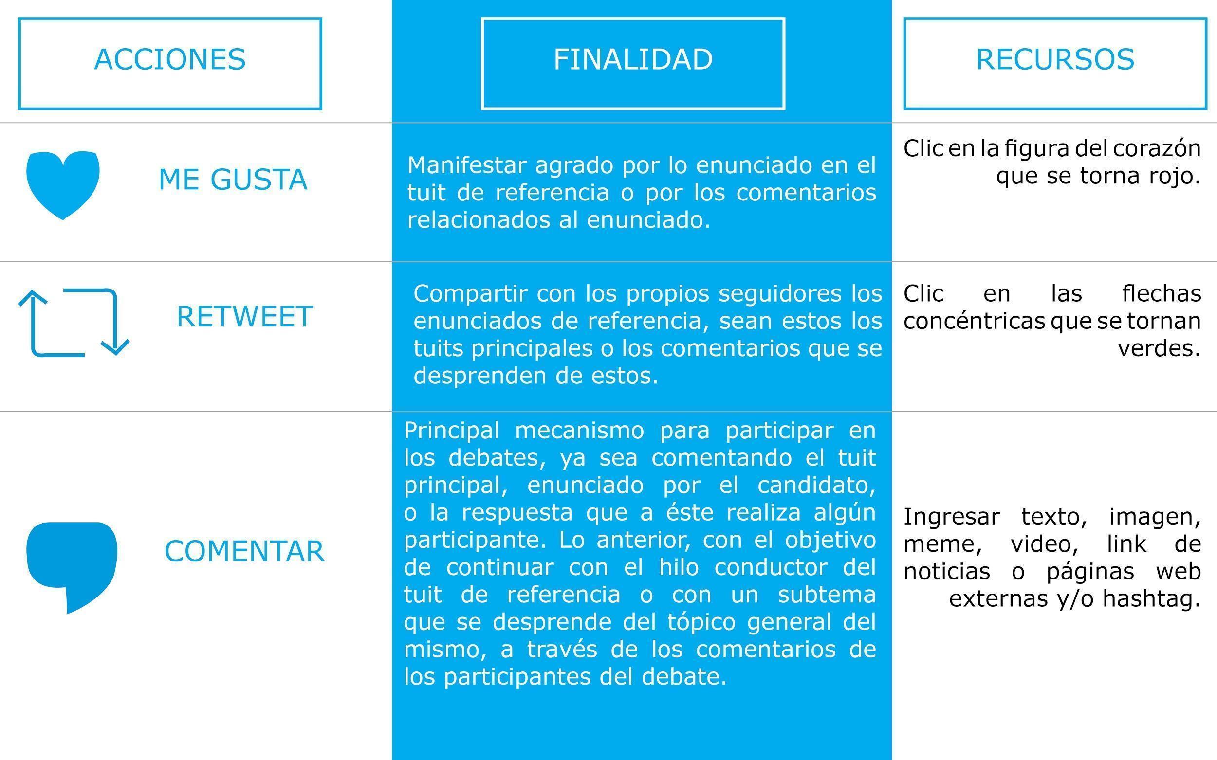 Aunque el debate político en redes sociales como Twitter tiende a trivializarse, también es cierto que esta red permite la participación, por pequeña que parezca y a través de los recursos que ofrece para la apropiación —comentar para manifestar una opinión o punto de vista; retuitear, expresar un “me gusta”—, de grupos de usuarios que habrían sido imposibles a través de los medios de comunicación tradicionales.