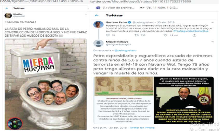En el contexto de la campaña por la presidencia de Colombia durante el periodo comprendido entre mayo 28 y el 16 de junio de 2018, Gallego-Galvis, Gayón-Tavera y Alzate-Pongutá (2021) plantearon que no hubo debate entre los candidatos que enfrentaron la segunda vuelta. En su lugar, argumentaron que la campaña se libró en redes sociales, específicamente en Twitter. En este ámbito, los autores se enfocaron en analizar las estrategias implementadas por ambos candidatos, concluyendo que las estrategias de lenguaje que se hicieron evidentes fueron: oposición, resistencia, encubrimiento, legitimación y deslegitimación; estrategias que lograron, según los autores, agudizar la polarización entre el llamado al nacionalismo, la salvaguarda de las instituciones y un nuevo proyecto de país.