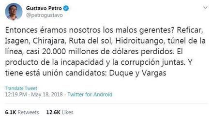 Figura 26.: Tuit de Germán Vargas sobre la