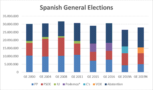 Governability problems had just emerged in Spain: In October 2016, Pedro Sánchez stepped down as PSOE´s general secretary and resigned as Congressman and leader of the Socialist parliamentarian group, due to his reluctance to support the formation of government with Mariano Rajoy (PP) as Prime Minister. Without repudiation from Sánchez, Mariano Rajoy’ government was inaugurated on 29 October. Less than two years later, in June 2018 Mariano Rajoy lost the motion of censure presented by Podemos, and Pedro Sánchez inaugurated a new government with Podemos as parliamentarian support. General elections have been held twice during 2019 —April and November. In this last electoral cycle, a new party from the radical right has emerged: VOX —first competing in 2018 Andalusian Autonomic Elections—. Now, after November electoral results, Sánchez leads a coalition government —PSOE + Podemos—, and VOX is the third force in Spanish Congress.