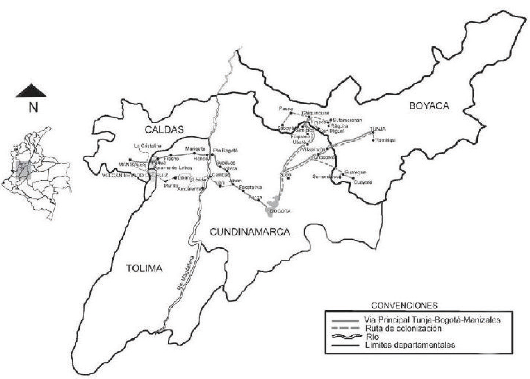 Figura 6: Ruta migratoria de cundiboyacenses a Caldas y Tolima