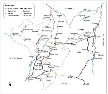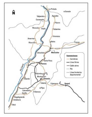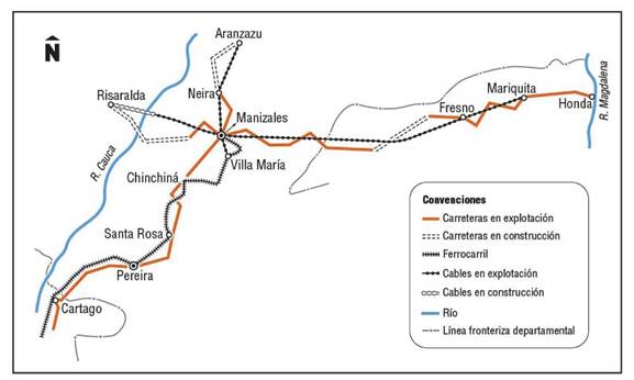 rotas, estradas, ferrovias, estradas, cabo aéreo, história do transporte, Gran Caldas.Introducción
