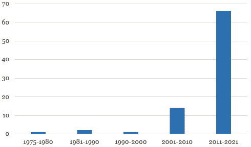 La mayoría de los estudios sobre Acción Cultural Popular (ACPO) son recientes, como lo ilustra la figura 1: mientras que ACPO apenas se estudiaba antes del año 2000, en el último decenio se han publicado más del 78 % de las obras, algo que puede sorprender. La explicación de este incremento súbito es la catalogación del archivo de Acción Cultural Popular por parte del Banco de la República y el reconocimiento otorgado por la UNESCO como patrimonio documental de la humanidad. Este archivo contiene el registro de más de cuarenta y siete años de actividad de ACPO. Los documentos antes estaban en la sede de la entidad en el municipio de Sutatenza y apenas eran visitados por un grupo reducido de estudiosos e investigadores (Restrepo-Torres 2017). El archivo contiene los libretos de los programas de radio emitidos, diapositivas, cartillas y libros de apoyo a los programas, discos de acetato, videos en VHS, fotografías, archivo epistolar de cartas recibidas y enviadas a oyentes, hojas de vida de los estudiantes, una colección empastada del semanario El Campesino, entre otros (Abril 2012).