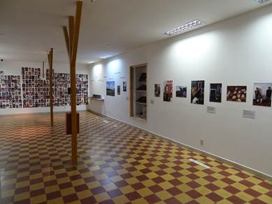 El Salón está conformado principalmente por imágenes (figura 1): un mural de fotografías de personas asesinadas y desaparecidas, unos álbumes conocidos como bitácoras, fotografías de los talleres realizados por la comunidad, fotografía documental e infografías del conflicto armado en la región. Sin embargo, el Salón es más que la suma de sus imágenes. Si bien la exposición de éstas en la pared, o en algún escaparate, se asemeja a las formas de exposición museísticas, el lugar no es, propiamente, un museo: la relación de los visitantes con las imágenes allí expuestas no es ni distanciada ni desinteresada, es decir, no hay allí un tipo de disposición contemplativa con respecto a la “colección”; en lugar de distancia, proximidad con las imágenes: una suerte de “des-distanciamiento” que quiebra las reglas de la recepción museística y galerística, pues los visitantes no conforman un público sino una comunidad unida por la pérdida, el dolor y los duelos no resueltos.10