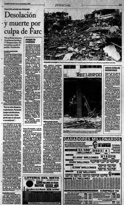- “Guerrilla atacó ayer en Granada”. 2000. El Espectador, Bogotá, diciembre 7. 🠔