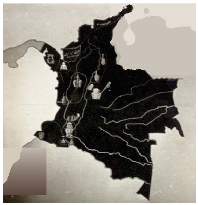Figura 1: Mapa arqueológico de Colombia. Exposición arqueológica de 1938