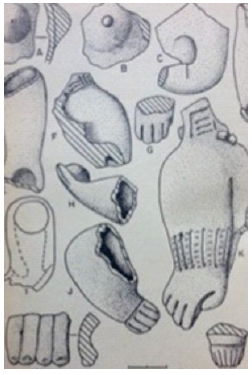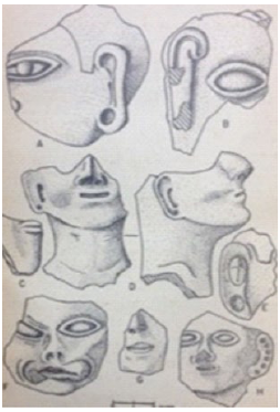 De acuerdo con ello debemos ser cautos al analizar estas fuentes y al asumir que con ellas únicamente se naturalizaba la visión de los vencedores sobre las culturas indígenas. Al subrayar el carácter provisional de sus trabajos y la necesidad que se continuara ampliando la investigación etnológica, arqueológica y etnohistórica, Edith Jiménez Arbeláez (1954) y Blanca Ochoa Sierra (1943) eran conscientes de que la función comunicativa y la apariencia de cierta solidez de sus discursos no debía confundirse con un interés por naturalizar y fijar una representación definitiva de las culturas sobre las que versaban sus "lecciones". En la misma dirección, tal como lo hemos afirmado, más que una intención cercana a la de los libros de geografía escolar, los mapas de pequeños fragmentos del territorio eran en este caso una característica del trabajo en proceso de los arqueólogos, mediante el cual querían evitar vagas generalizaciones y al mismo tiempo recalcar lo específico de sus hallazgos, tal como ocurría cuando encontraban trozos de piezas destruidas que reproducían en imágenes (figuras 6 y 7). En síntesis, todo un lenguaje visual que hacía del fragmento un medio "confiable" del conocimiento científico.