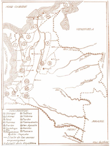 Figura 8: Mapa arqueológico de Colombia (Museo del Oro, catálogo de 1944)