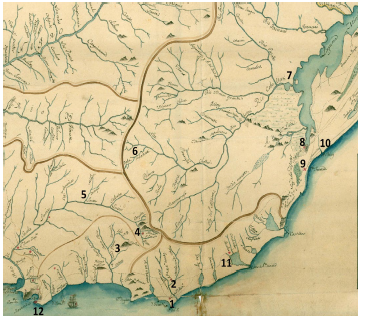 Figura 1: Pueblos de la frontera este del virreinato de Buenos Aires que conformaron en 1816 el departamento de Maldonado19