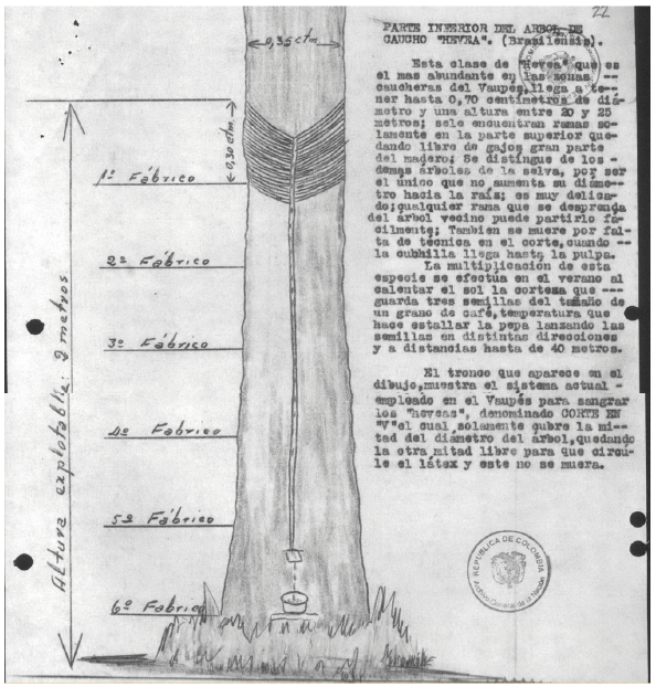 La Rubber trajo también algunos técnicos de sus plantaciones, para enseñar a los trabajadores colombianos, los métodos modernos de la explotación del Hevea; trajo las máquinas laminadoras para producir por primera vez en Colombia el caucho laminado; a lo largo de los principales ríos, instalaron Comisariatos para aprovisionar a los caucheros y comprarles el producto; hubo derroche en todo" (Chaves 1966, 2).