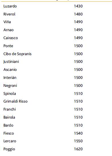 Tabla 1: Llegada aproximada de genoveses a las Islas Canárias