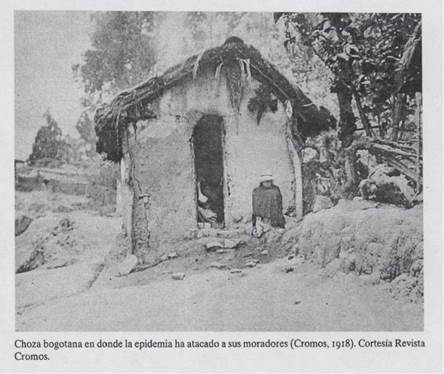 En el plano interno, surgieron como problemas fundamentales la necesidad de revitalizar la economía de la nación y de refrenar el malestar creciente entre los artesanos y los obreros. La crisis sanitaria que provocara la pandemia era uno de esos aspectos críticos. En diciembre, cuando llegó a su fin la pandemia, el saldo de muertos era cerca de 30 000 colombianos.15 El país corrió con buena suerte salvándose de la tercera oleada de la gripa que reaparecería en Sur América durante la primavera de 1919, golpeando con fuerza letal a Perú y Chile, particularmente. La gripa continuó apareciendo en el altiplano colombiano, en Boyacá causó la muerte de 5996 personas entre 1919 y 1927, para un promedio anual de 666 víctimas fatales. Estas muertes, sin embargo, se ajustaban al patrón tradicional de la gripa cuando se presentaba en épocas de lluvias y los casos que ocurrieron carecían de las características extremas de la pandemia de 1918.16 Asimismo, en agosto de 1921, Bogotá registró un rebrote de la gripa. No obstante, de nuevo la manifestación de la enfermedad careció de las características de intensidad de la pandemia de 1918 y se logró controlar relativamente fácil (Castilla 1922, 28). No obstante, la experiencia de la gripa española hizo aún más dramáticas las condiciones deplorables que caracterizaban a la salud pública. Puso de manifiesto la situación miserable en la que vivía casi la mitad de los habitantes en Bogotá, convirtiéndose en el catalítico de los cambios en las leyes sanitarias del país (Cotrino 2007, 12). Las víctimas más susceptibles a la gripa habitaban en los cerros del Paseo de Bolívar; la gran mayoría eran inmigrantes recientes a la ciudad y hacían parte de la clase trabajadora más pobre. Sin ningún otro lugar a dónde ir, habitaban en barrios densamente poblados en las zonas altas de la ciudad carentes de todos los servicios públicos. La casucha típica de una habitación era una pieza de dos o tres metros cuadrados por uno y medio de alto construida con bahareque. Era un espacio minúsculo con poca luz y ventilación y funcionaba como cocina, dormitorio y establo para los animales, contenía un fogón de carbón construido en piedras, que se encendía al anochecer, únicamente; un miserable camastro cubierto con retazos de mantas y trapos por el suelo en desorden y desaseo. Cerdos, perros y otros animales compartían el rancho con familias de seis y ocho personas. La basura y todos los desperdicios se arrojaban a la mitad de la calle, creando condiciones nauseabundas, que eran todavía más miserables en la época de lluvias. La epidemia, en apariencia incontrolable, que hacía estragos entre los residentes del Paseo Bolívar, impulsó a periodistas, ingenieros y políticos a condenar al vecindario como un foco de infecciones violatorio de la salud y la moralidad de toda la población urbana (Martínez Martín, et al. 2014, 11-12; Cotrino 2007, 6). A la vanguardia de dicho movimiento se encontraban los médicos que fomentaban reformas, pero la clase obrera, "más consciente de sus necesidades y reivindicaciones, puso en primera línea de sus exigencias la construcción de viviendas higiénicas para los obreros y sus familias" (Puyo Vasco 1988, 174).