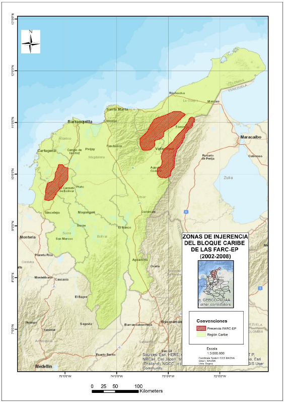 El presente artículo se concentra en la región de la Costa Caribe con el objetivo de indagar acerca de las razones político-militares que permitieron que en la subregión de Montes de María hubiera una temprana desarticulación de los frentes del Bloque Caribe de las FARC-EP que allí operaban, mientras que las estructuras que hacían presencia en la Sierra Nevada de Santa Marta fueron expulsadas solamente hasta finalizar el periodo de estudio, dirigiéndose a la Serranía del Perijá donde se mantuvieron en actividad junto con las otras estructuras que hacían presencia previamente en la zona.2