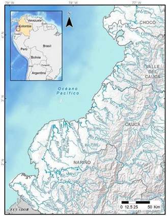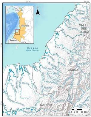 Figura 1: Zona de actividades misioneras de los Agustinos Recoletos en la costa Pacífica sur de Colombia