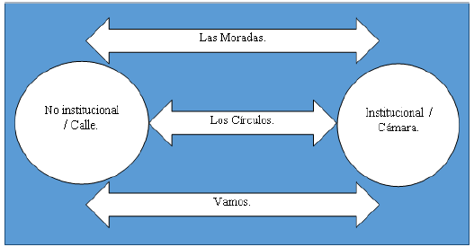 Figura 2: Las Moradas, los Círculos y Vamos. De la calle a las câmaras y de las câmaras a las calles