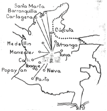 Aun así, los escasos espacios de conferencias fueron una dificultad para el desarrollo del proyecto que improvisaba salas de proyección en escuelas y plazas municipales, donde el clima muchas veces impidió la consecución de sus objetivos41. Otro obstáculo del cinematógrafo estaba en las precarias vías de comunicación, en su mayoría constituidas por la combinación de caminos de herraduras y carreteras de asfalto, e incluso en Caldas la peripecia del transporte por cable aéreo en el municipio de Aranzazu. La excepción a este panorama técnico desfavorable era Cundinamarca ya que, al albergar a la ciudad de Bogotá, centro del sistema de gobierno colombiano, se favoreció el desarrollo de la infraestructura vial en el departamento.
