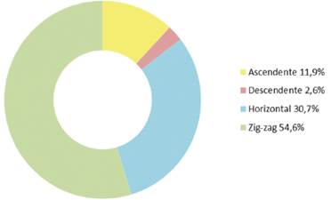 Luego de identificar la frecuencia relativa de los elencos políticos en el ejercicio de sus cargos y sus respectivos itinerarios por las distintas esferas de poder, resultó de interés indagar cuál fue la proyección de la carrera de dichas autoridades. Algunos especialistas proponen al menos cuatro tipos de trayectorias: ascendentes, descendentes, horizontales y en zigzag. Conviene precisar, que dicha clasificación sigue una lógica totalmente descriptiva, entendiendo como nivel inferior el departamental y superior el nacional. Por tanto, no se contempla ningún tipo de carga valorativa sobre la importancia o atractivo de la arena de Gobierno, ni desde el punto de vista de la percepción de los actores ni de los recursos o competencias asociadas a cada nivel21. Para responder de estas cuestiones se tomó como universo de análisis a aquellos personajes que ejercieron más de tres cargos públicos a lo largo de su trayectoria, es decir, a 452 (62.3 %) de los 725 actores estudiados. El gráfico 1 presenta una primera aproximación al problema. Por un lado, ilustra un alto porcentaje de políticos (54.6 %) que realizó carreras en zigzag, es decir, que ejercieron indistintamente cargos departamentales, provinciales o nacionales de forma correlativa sin que esto alterara su posicionamiento e influencia política. Por otro lado, el 30.7 % de los actores estudiados mantuvo una trayectoria de tipo horizontal, es decir, que desarrollaron sus carreras en una única esfera de poder. Por su parte, el 11.9 % de los actores políticos llevaron a cabo una trayectoria pública ascendente, esto es, que lograron ganar posiciones en niveles político-administrativos superiores al nombramiento inicial, saltando de la esfera departamental a la provincial. Finalmente, el 2.6 % de ellos tuvo una trayectoria pública descendente, lo cual significa que comenzaron ejerciendo cargos en nivel provincial y, posteriormente, fueron designados o electos únicamente para cargos en el nivel departamental. Estos trazos sobre los movimientos de las trayectorias políticas contribuyen a poner reparos a ideas preconcebidas sobre las posibilidades de ascenso en las carreras políticas y advierten la presencia de un alto porcentaje de dirigentes que tuvieron una multiposicionalidad política que les permitió alternar su injerencia en las diversas esferas de poder y operar fuertemente en la lucha política en los distintos escenarios departamentales, provinciales o nacionales. Por su parte, el análisis detenido del puñado de actores políticos que desarrollaron sus itinerarios en una esfera de poder, que puede ser la departamental o la provincial, da cuenta de cómo tendieron a afianzar vínculos y redes institucionales y con actores del entorno, lo cual les permitió realizar, mayormente, trayectorias de largo alcance y, a través de su acción política, contribuir en el proceso de centralización y consolidación del poder central.