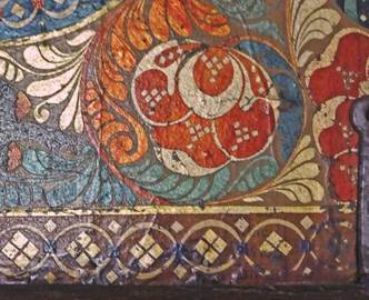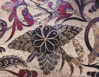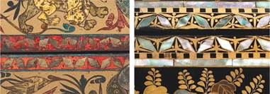 Figura 3: Arqueta de laca namban. Detalle del dorado makie combinado con el nácar
