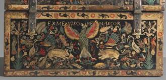 Ahora bien, la imagen frontal de la arqueta analizada -representativa de la concordia-, la imagen alusiva a la resurrección presente en el lado opuesto, y las referencias visuales a la muerte incluidas en los laterales sugieren que posiblemente se trató de una arqueta eucarística con un mensaje catequético dirigido a los indios. Por otro lado, la presencia de Amaru en dificultades reforzaría la idea de que el cristianismo resultó victorioso sobre las religiones nativas. Respecto a la datación del baúl, no hemos hallado un documento que permitiera establecer claramente esa información. Sin embargo, desde el punto de vista del estilo artístico de la obra y observando las figuras humanas -dibujadas ingenuamente y alejadas del canon europeo-, podríamos decir que estamos ante una obra elaborada en la segunda mitad del siglo XVI o en la primera del XVII.