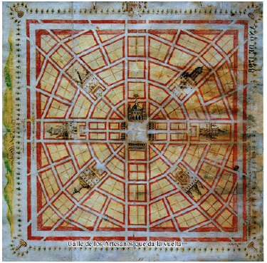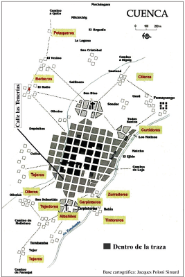 Figura 1: Plano de Cuenca con concentraciones artesanales en el período colonial
