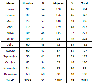 De acuerdo con la evolución del año anterior, los tres primeros meses del año concentraron el mayor número de casos, para luego seguir una tendencia a la baja como lo muestran la tabla 8 y la figura 10,