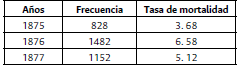 Tabla 9: Tasa de mortalidad en la epidemia de tifo de la Ciudad de México, 1875-1877