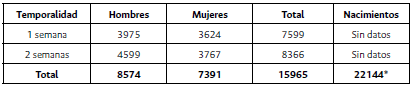 *Estimado multiplicando los nacidos en el primer semestre, 11 072 x 2 = 22144. Fuente: Amador, “Noticia que manifiesta”, anexo 11: 38.