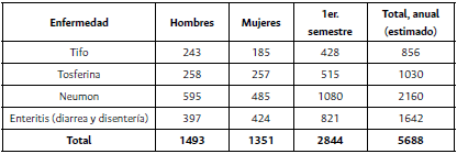 Tabla 17: Mortalidad por enfermedades más comunes, 1895