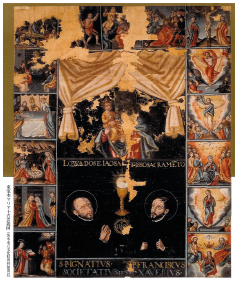Figure 3: The Virgin Mary with the Infant Jesus and Her Fifteen Mysteries, Loyola and Francis Xavier