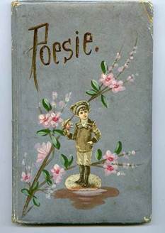 El libro de bebé de Cano mide aproximadamente 20 centímetros de alto por 13 de ancho. Está cosido en cuero pintado y contiene hojas de papel color crema y su estado de conservación es bueno. Su portada es de un azul grisoso, tiene la palabra Poesie escrita en la parte superior y debajo a un niño parado en el centro con un pequeño bouquet en su mano y una rama con flores que parece pintada a mano (figura 4). Por el título en francés es posible que la libreta haya sido comprada en Paris por Cano entre 1898 y 1901.