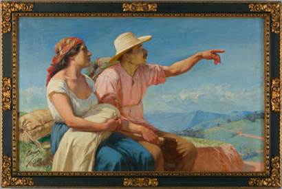 El artista colombiano Francisco Antonio Cano nació en Yarumal, Antioquia en 1865. Su influencia sobre los géneros de paisaje, la pintura de costumbres y el retrato ha sido ampliamente estudiada tanto en su contexto regional como académico, así como su rol en los discursos fundacionales de la nación. La educación de Cano fue heredada directamente de su padre, un hábil artesano que pintó y trabajó como orfebre y carpintero. El nombre de Cano es recurrente en la historia del arte colombiano por su obra maestra, Horizontes de 1913 (figura 1), "... un cuadro de formato mediano, que representa a una pareja de colonizadores antioqueños que hace un alto en el camino"1. La carrera artística de Cano fue exitosa, especialmente, en el círculo de la clase política conservadora.