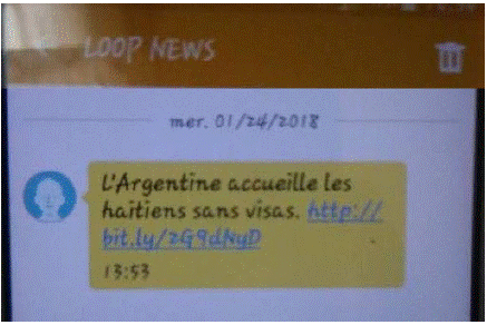 Figura 1: Mensaje de texto enviado por Loops News a un residente de Haití