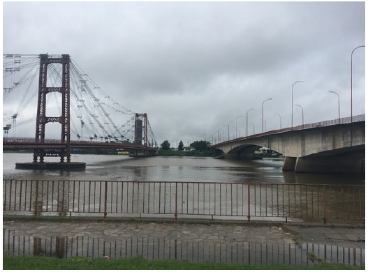 View of the Oroño Bridge (right) and the "Colgante" Bridge Reconstructed in 2002 (left).